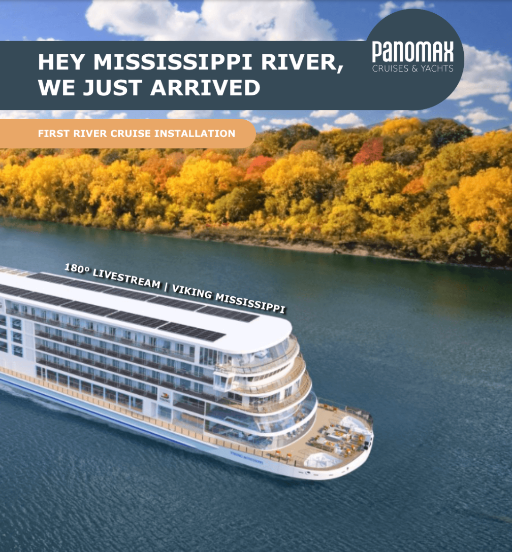 The VIKING MISSISSIPPI is the first river cruise ship to feature a Panomax camera, marking our official entry into the river cruise market. Equipped with a 180° livestream system, this installation brings the beauty of one of the world’s most iconic rivers directly to cruise enthusiasts around the globe.